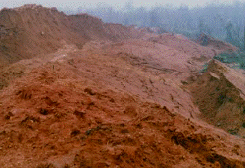 Landslide in Conecuh County in 1997. Photo above shows the scarp and upper portion of the slide.